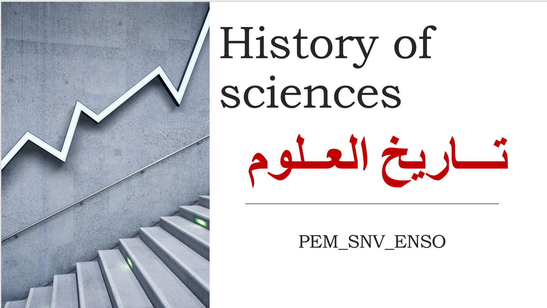 يحتوي هذا الدرس الالكتروني على مجموعة من المحاضرات التي تغطي أهم المحطات التاريخية التي عرفها تطور المعرفة العلمية منذ فجر الحضارات إلى العصر الحديث، مسترشدين في ذلك بالبرنامج الرسمي المعتمد في التكوين الأساسي.
