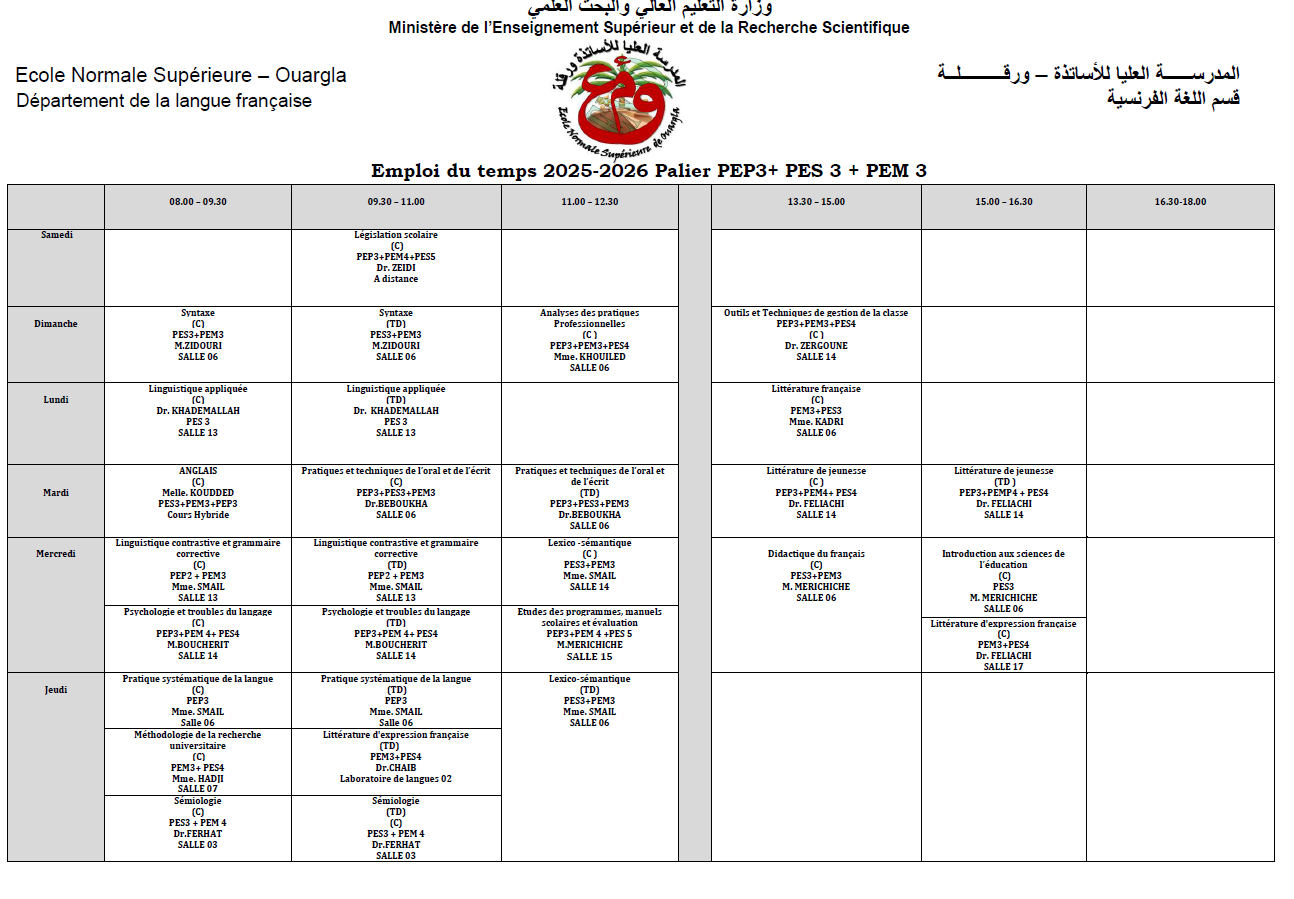 E-Learning - Ecole Normale Supérieure de Ouargla الصفحة الرئيسية